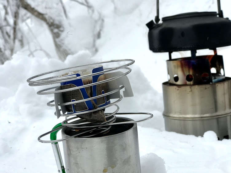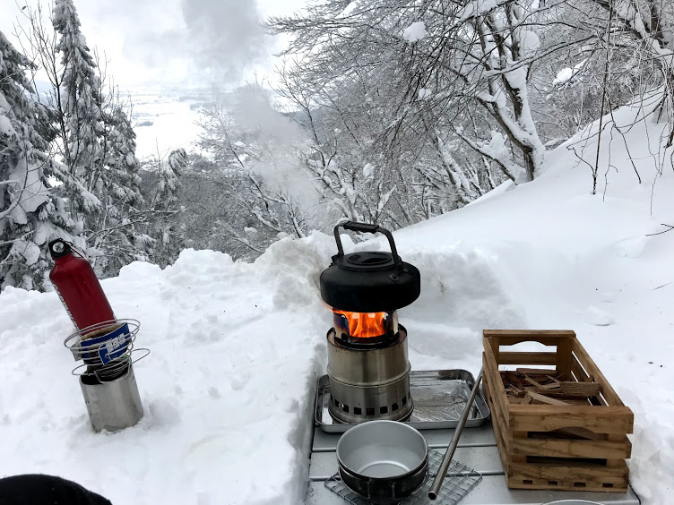 まずは雪でテーブルと椅子を作ってコーヒー沸かします。
