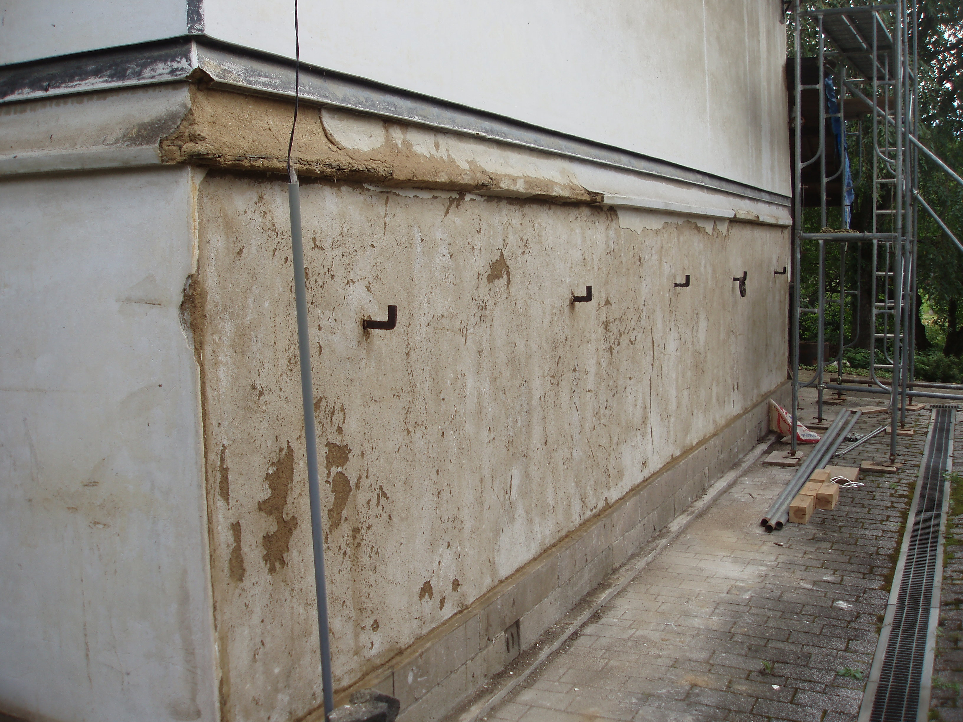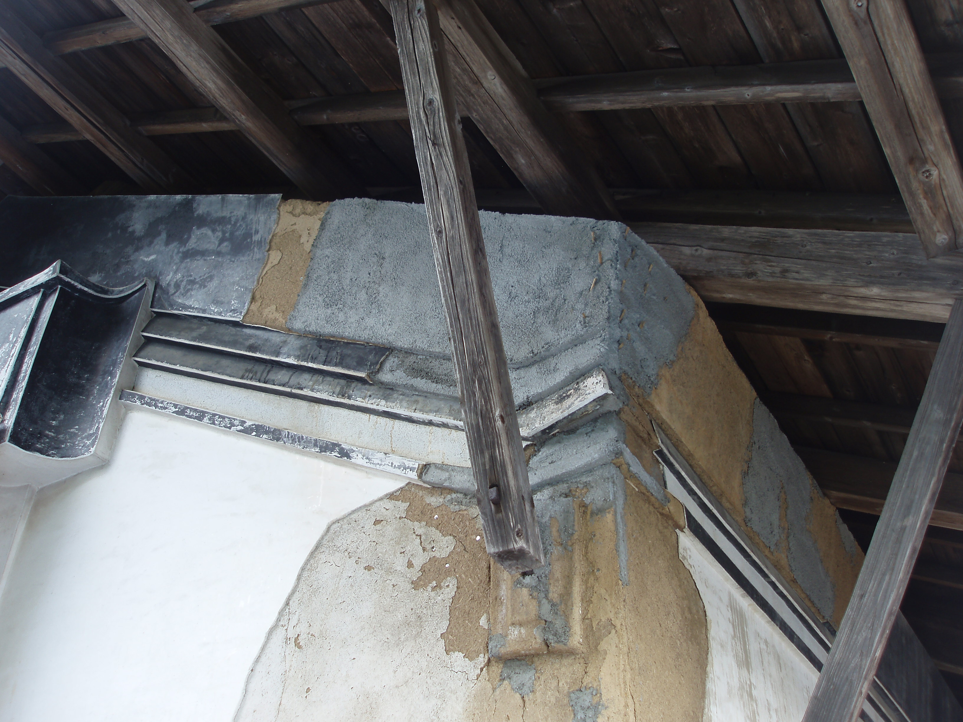 ぼろぼろになった漆喰や下地材の撤去、