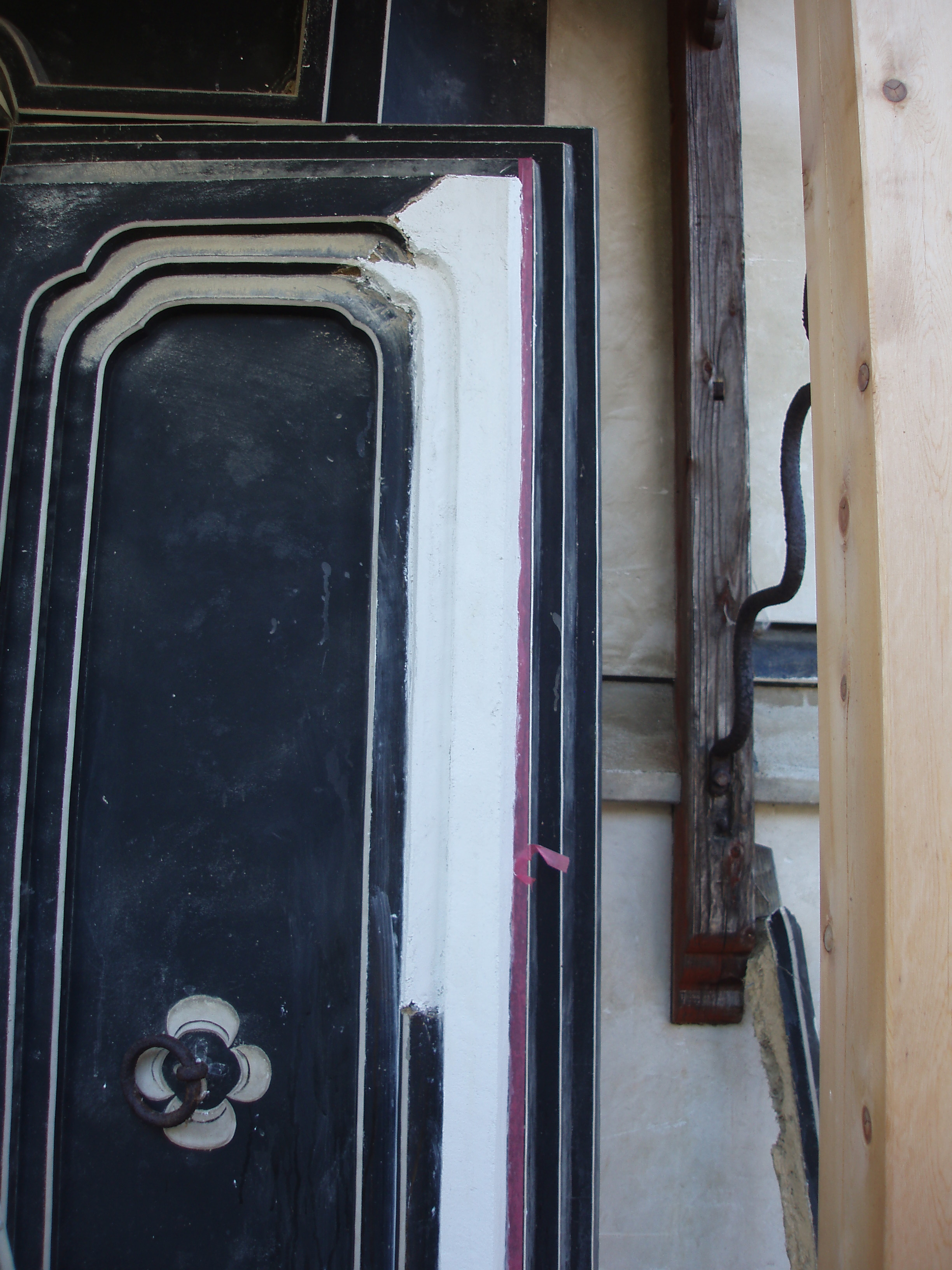下地から剥離して浮いてしまっている漆喰の剝ぎ取りから始まりました。