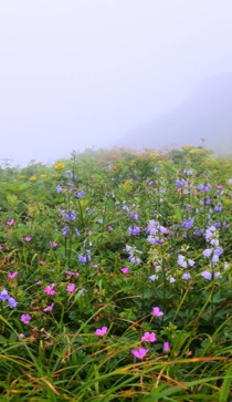 足元の花々はお見事、夏の雨を謳歌していました。