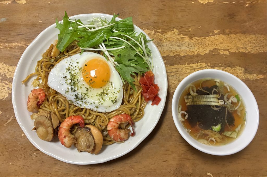 海老やホタテがゴロゴロ入っている横手焼きそば。