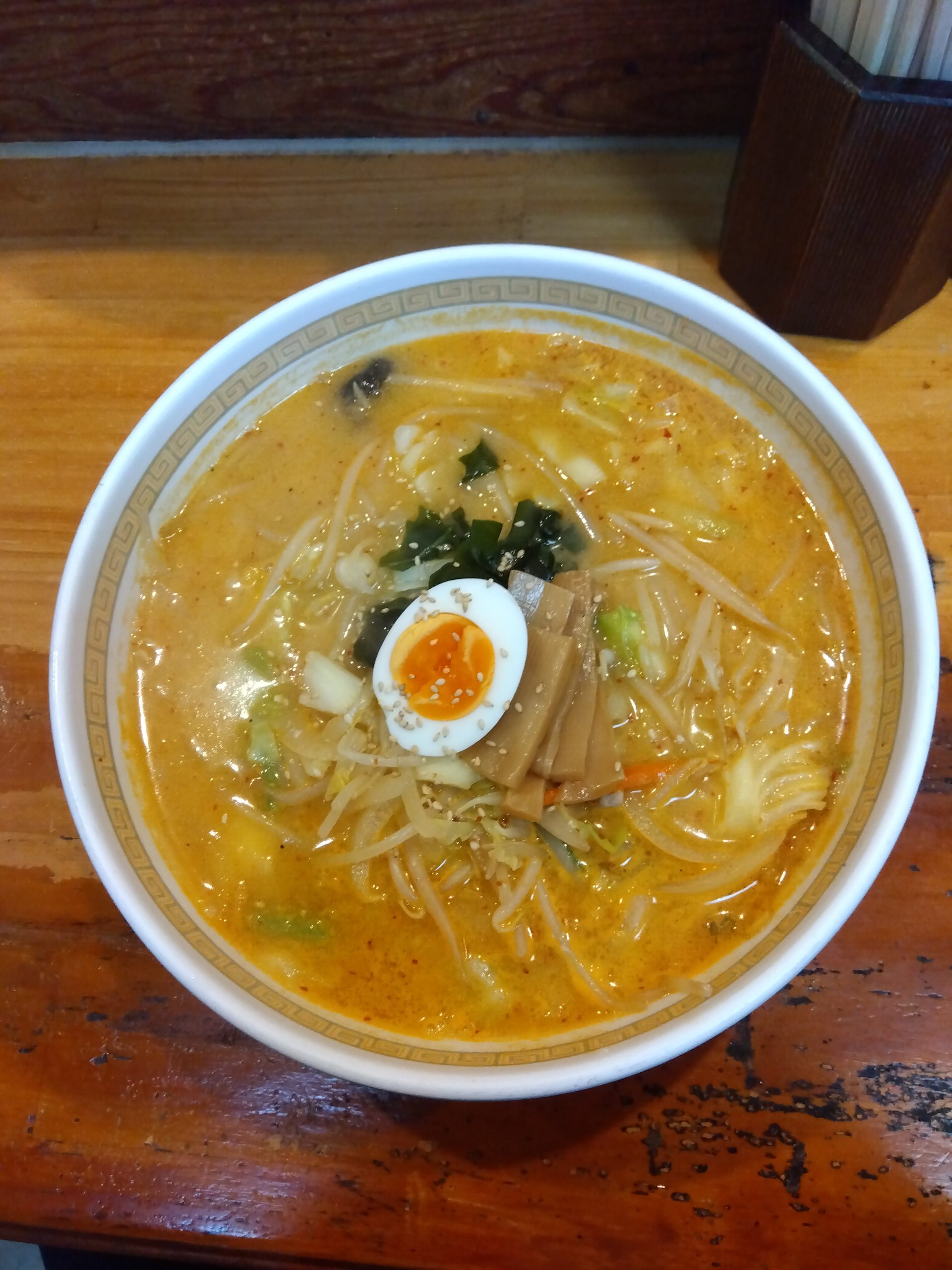 中華そばと同じ細縮れ麺にコクのある味噌スープが良く絡みます。