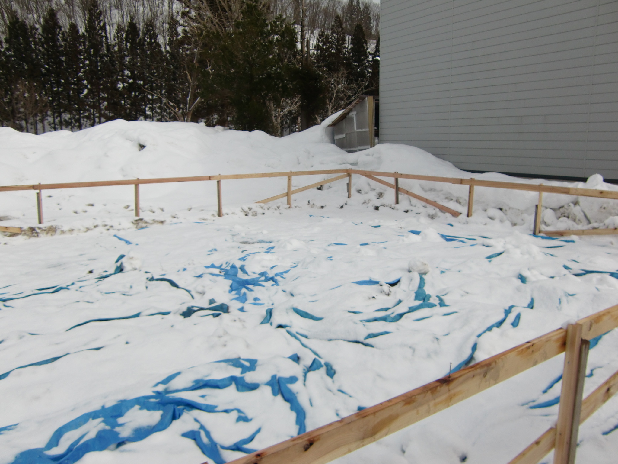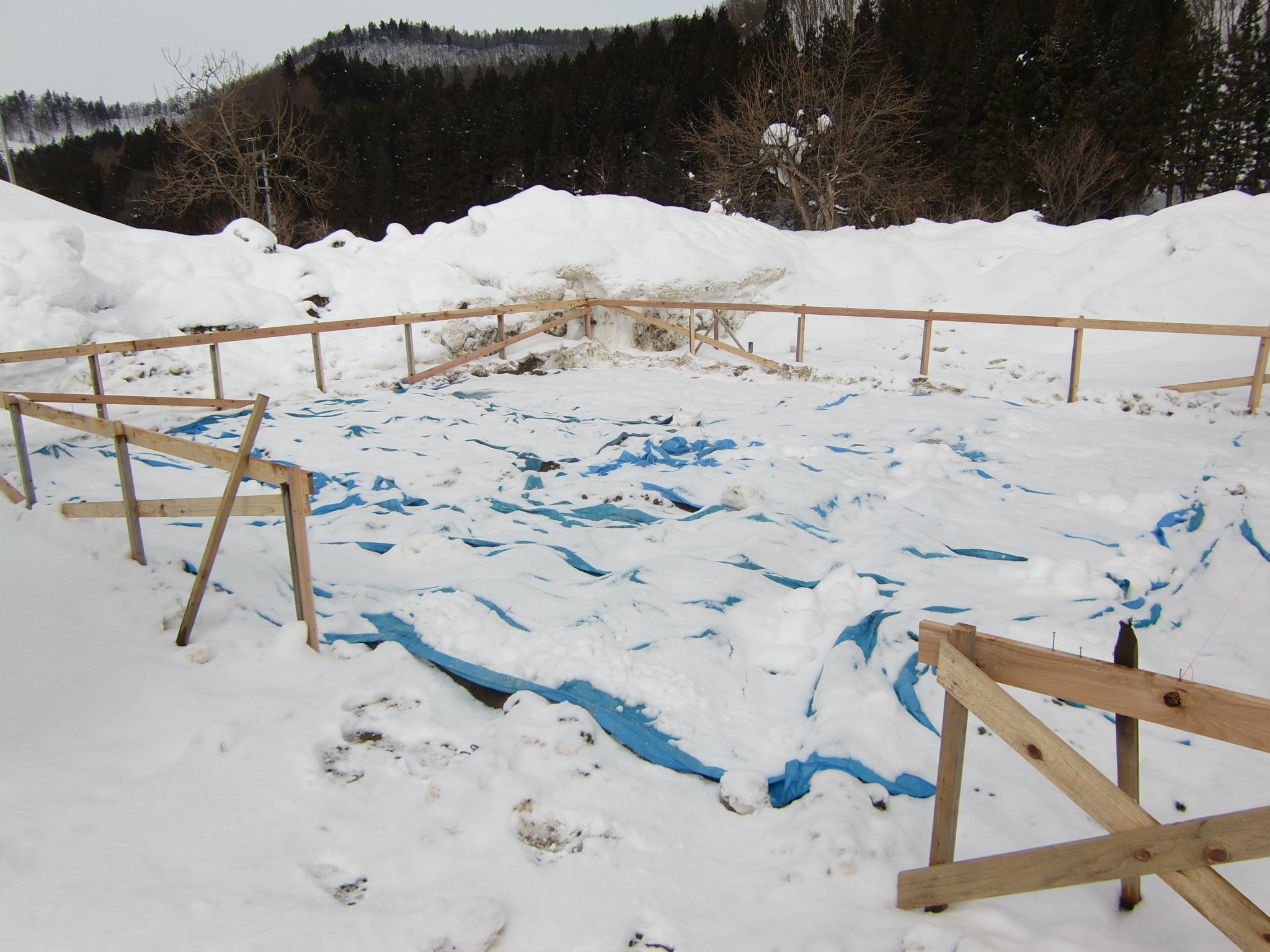 ブルーシートの上にはうっすらと雪が積もってました(゜-゜)