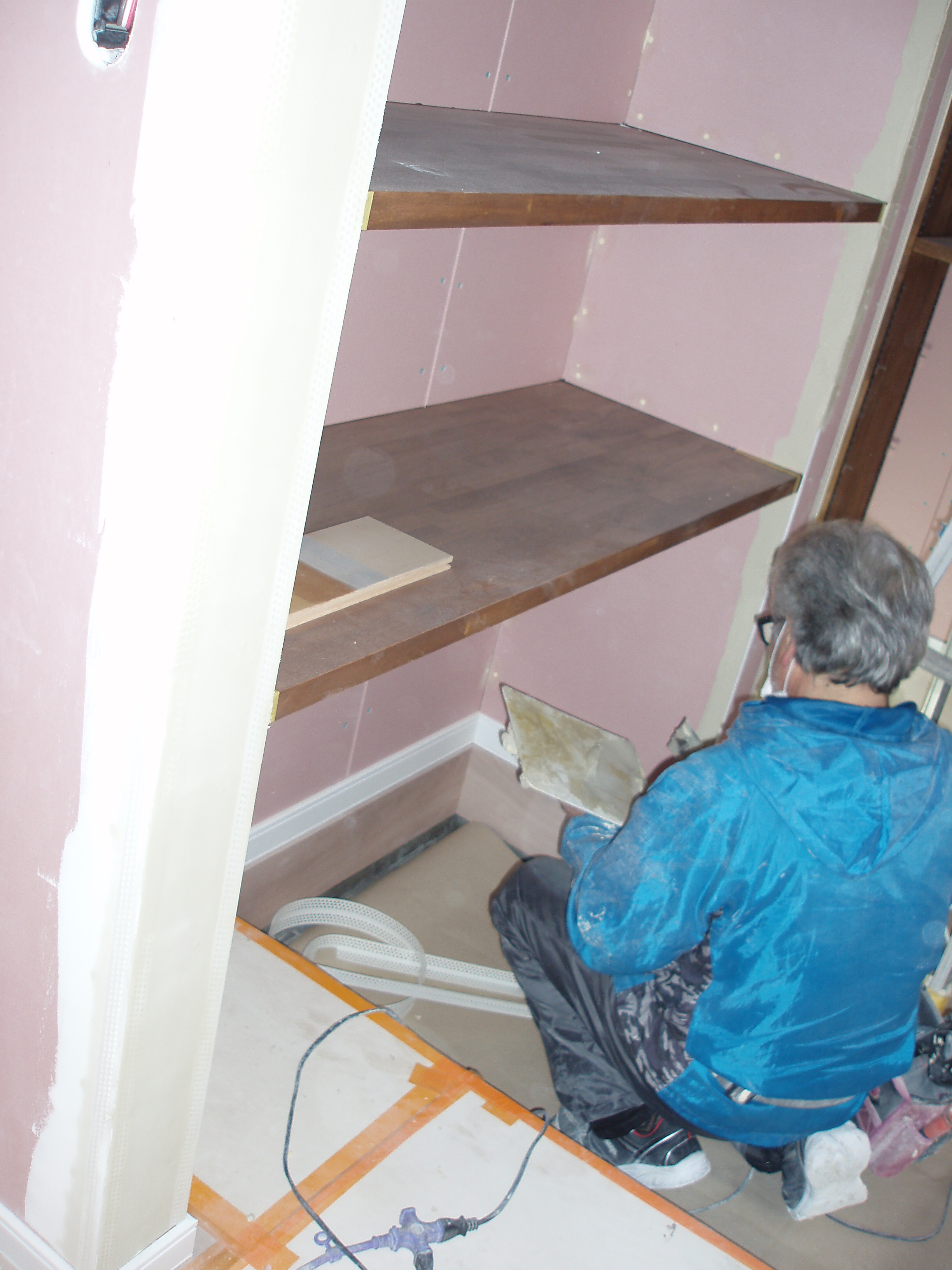 面積が広い事と見切り材が多い事で大変手間暇が掛かっているようですが、見ていると細かいところまで丁寧に仕事していることが良く分かります。