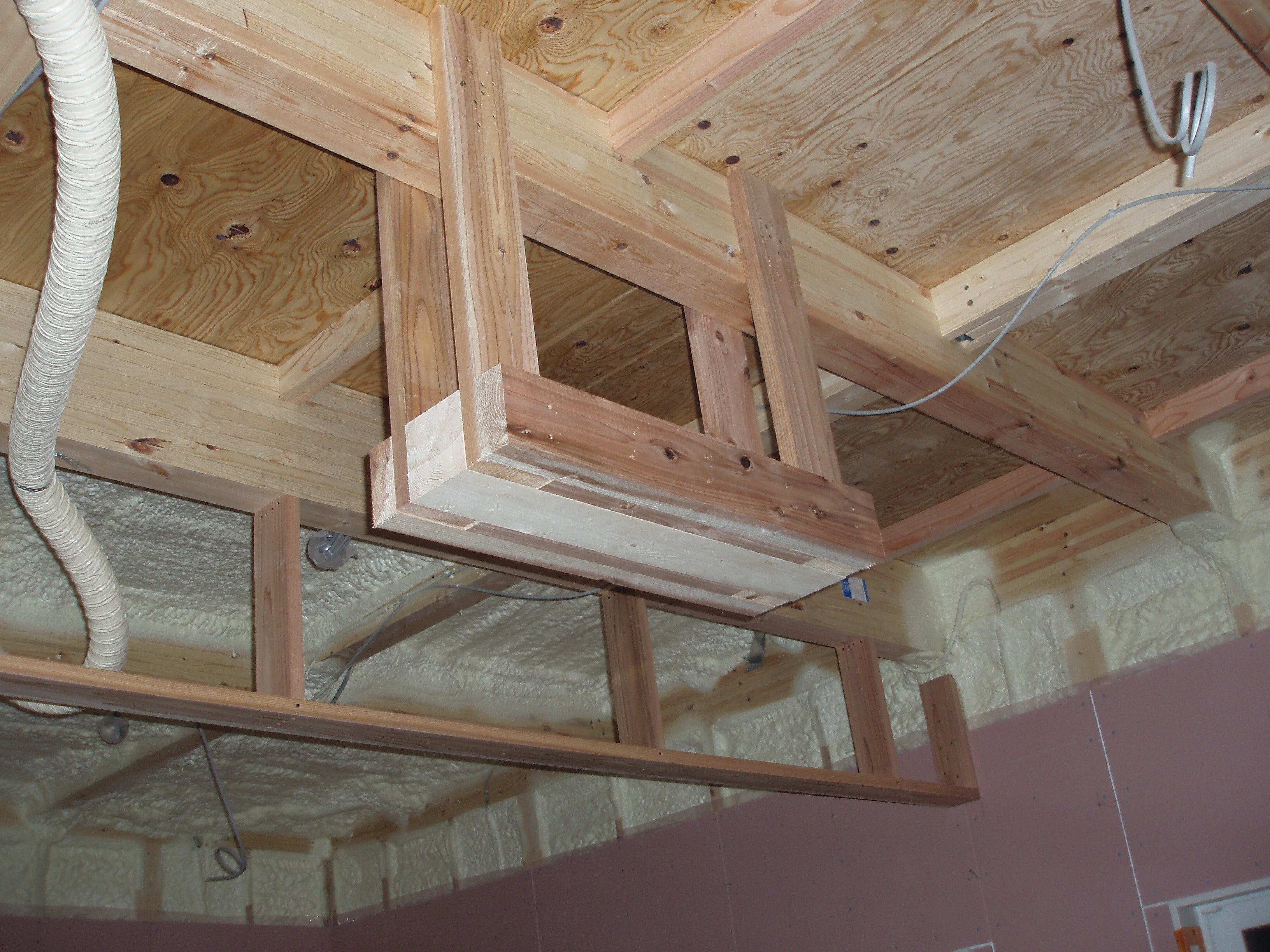 前々回、ここで紹介していた寝室の不思議な構造部材の正体が今日判明しました。その正体は「ハンモック」の金具取り付け部材でした。