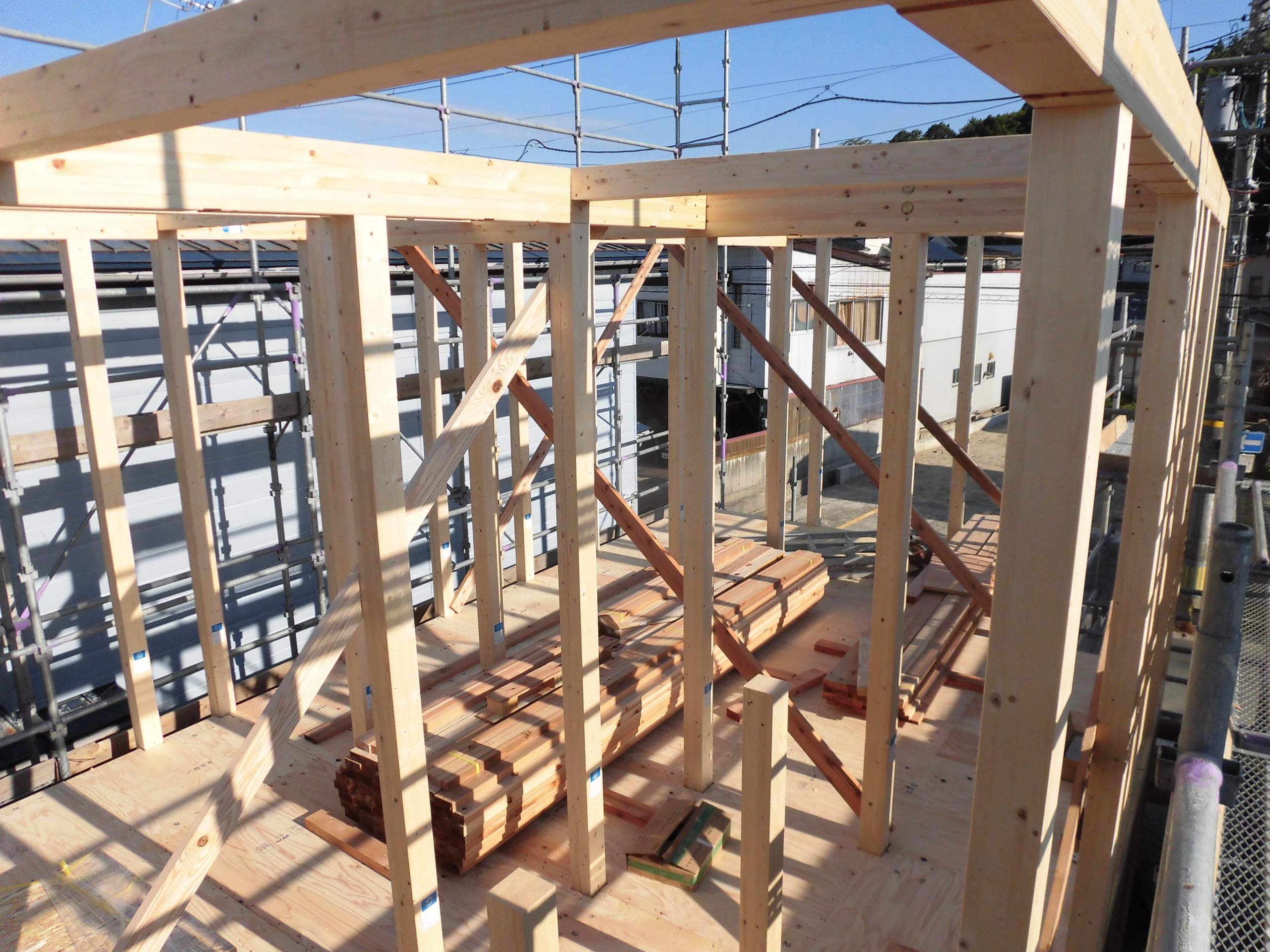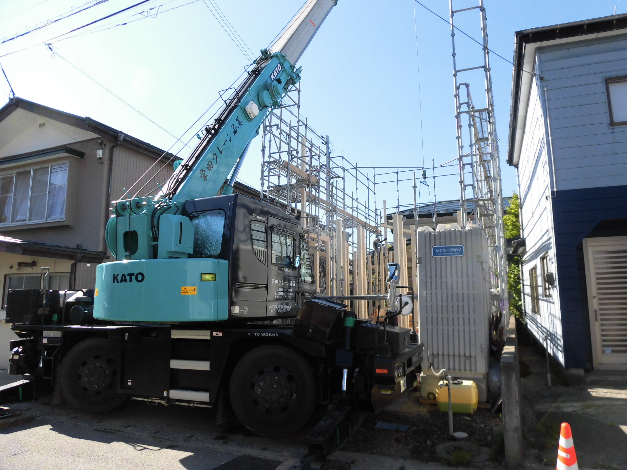 さらにその翌日からクレーン車が入り、建て方が始まり、順調に組み上がりました。