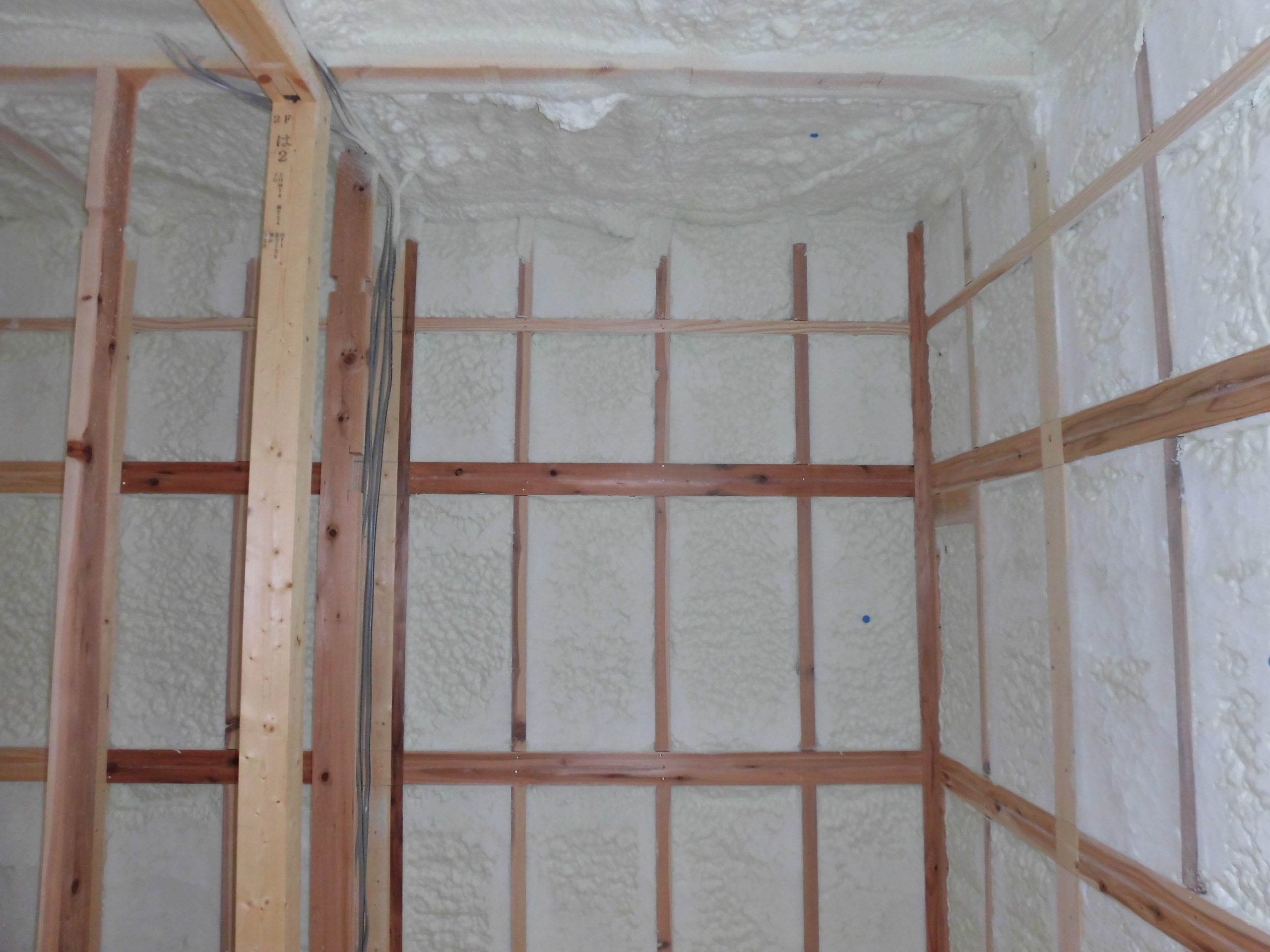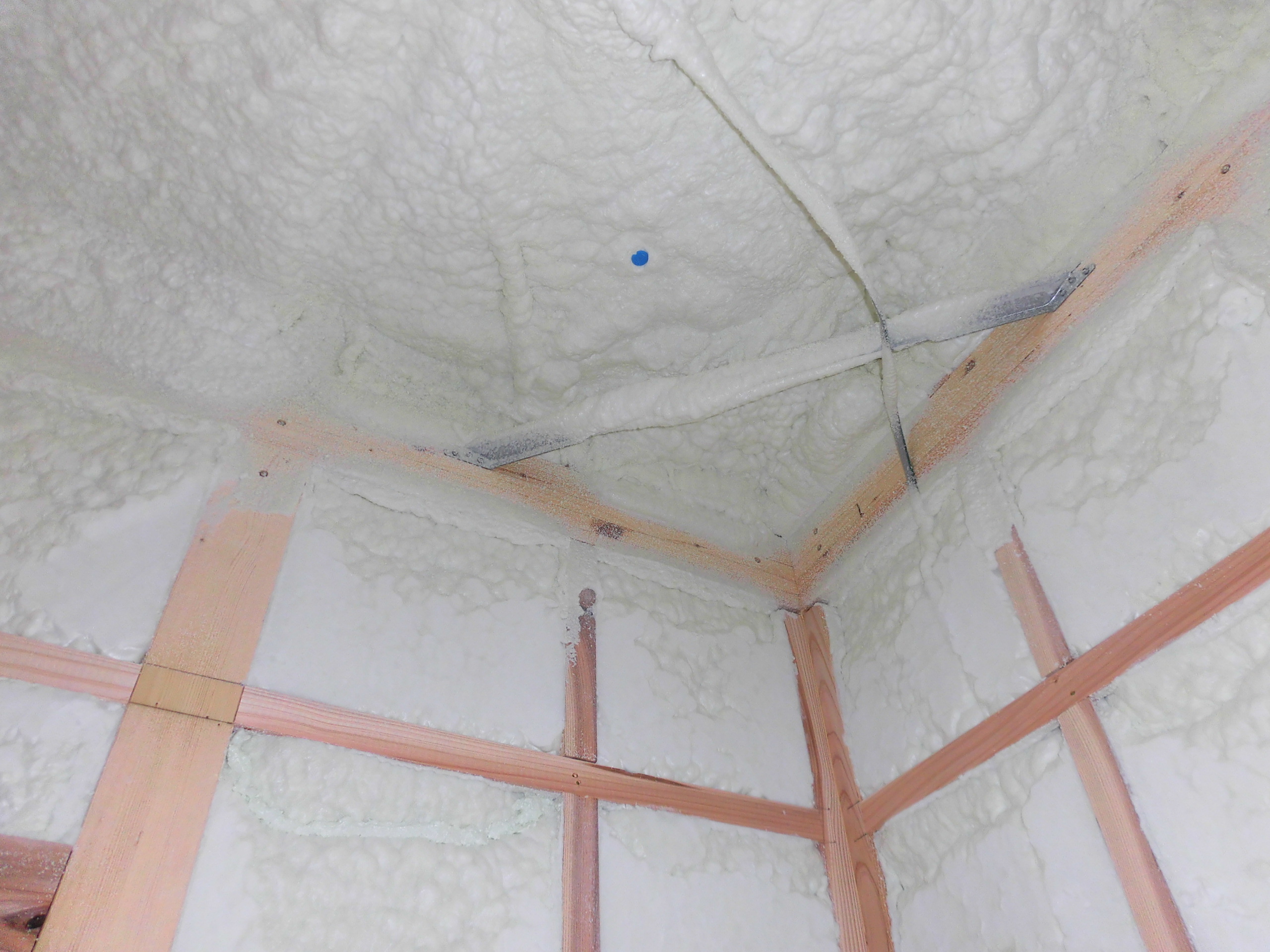 壁と屋根断熱は「アクアフォームLITE」で壁は85㎜厚、屋根及び外気床は175㎜です。