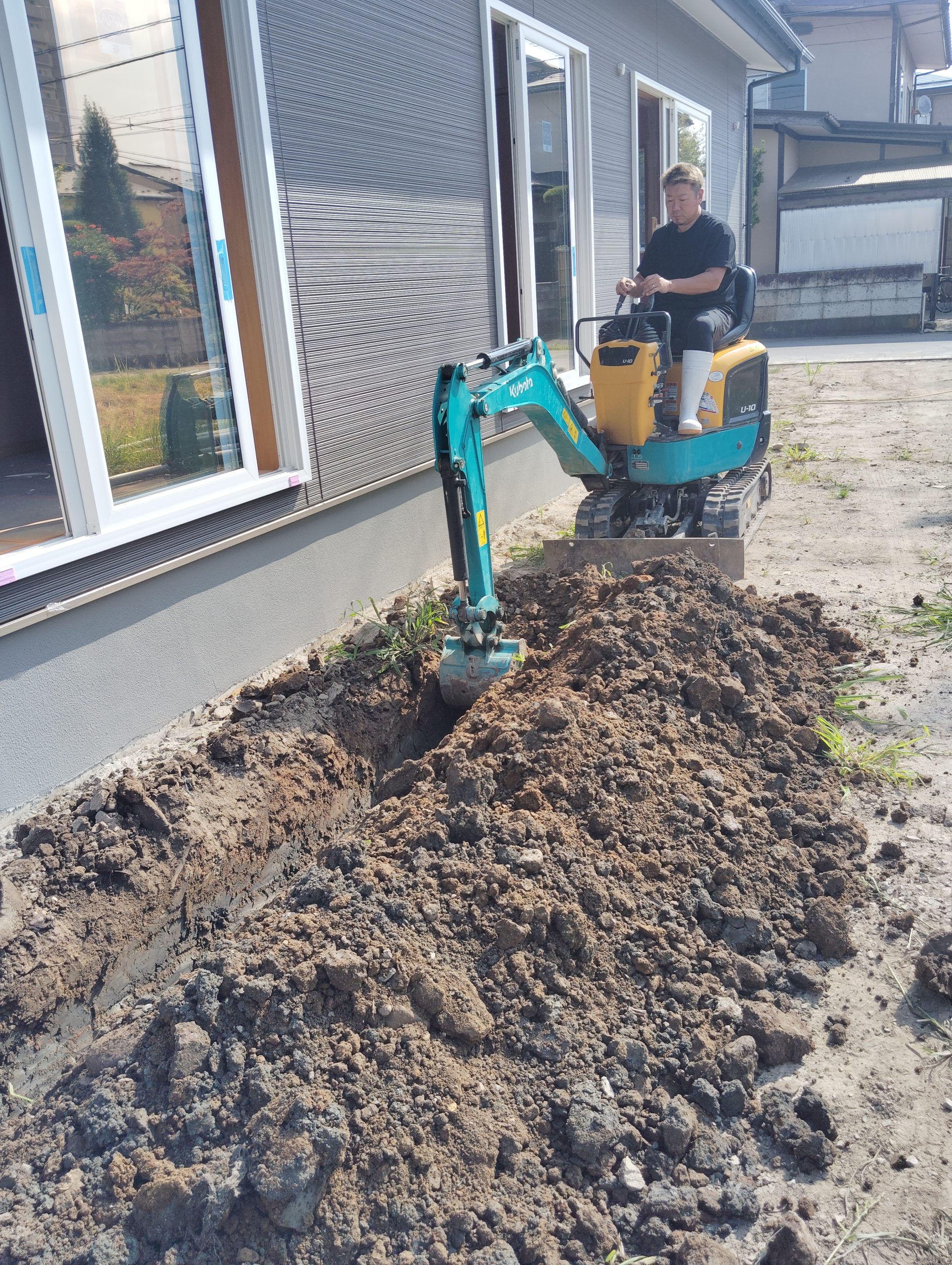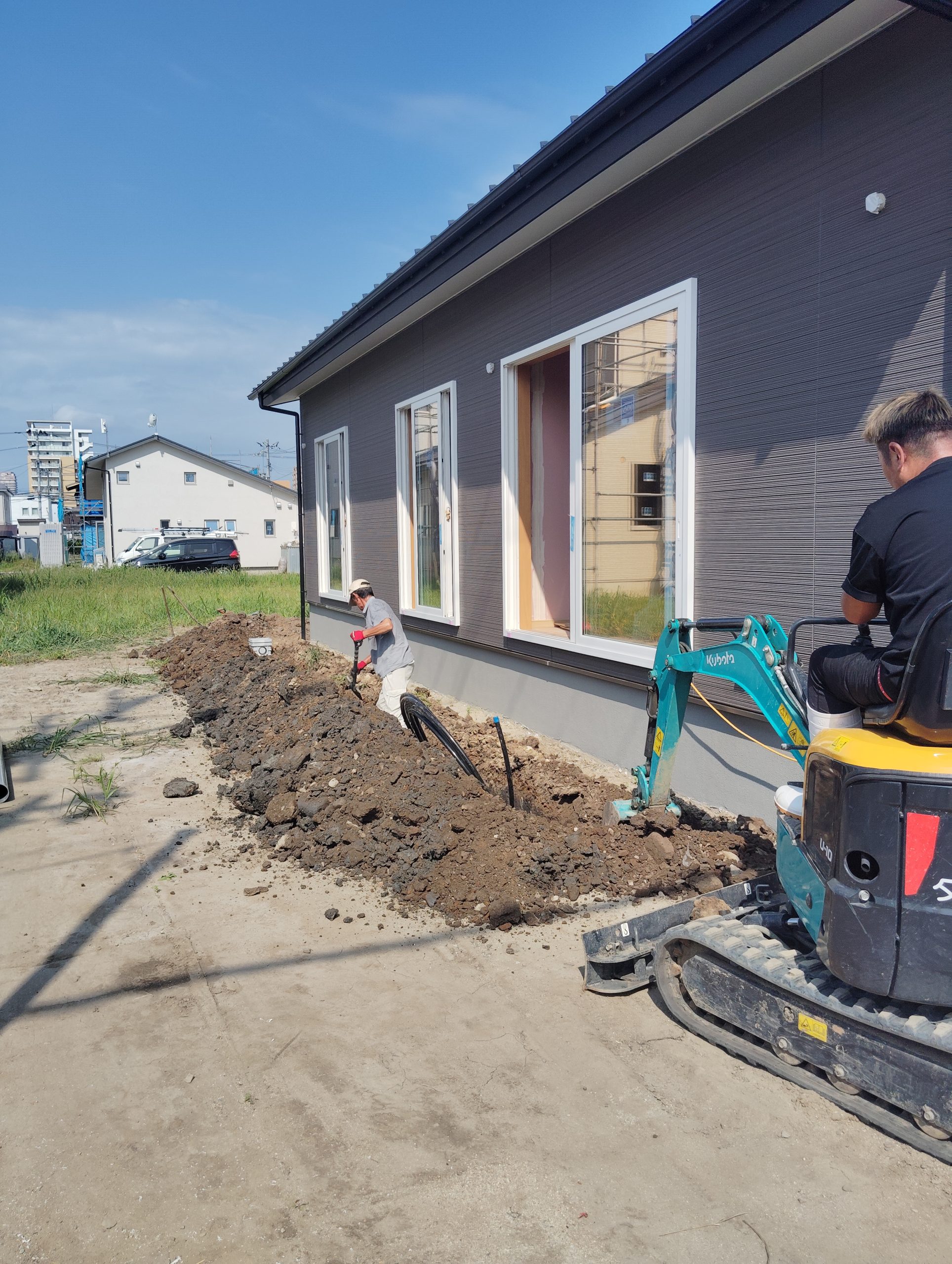 梅雨が明けてから暑い日が続いていますが、暑い中、外部の給排水工事に取り掛かっています。
