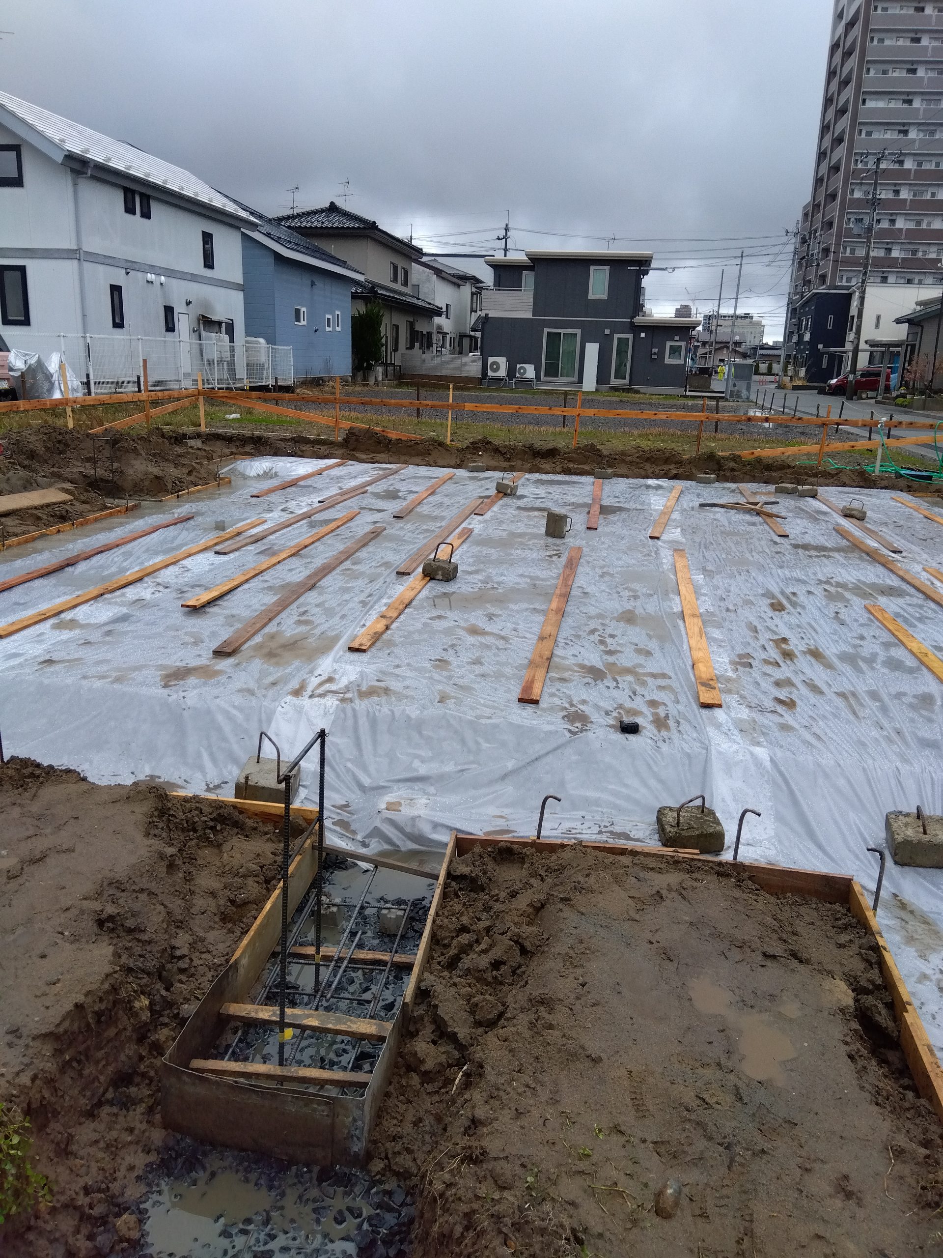 秋田市手形【S様邸】~杭打ち⇒防湿シート、捨てコン迄~