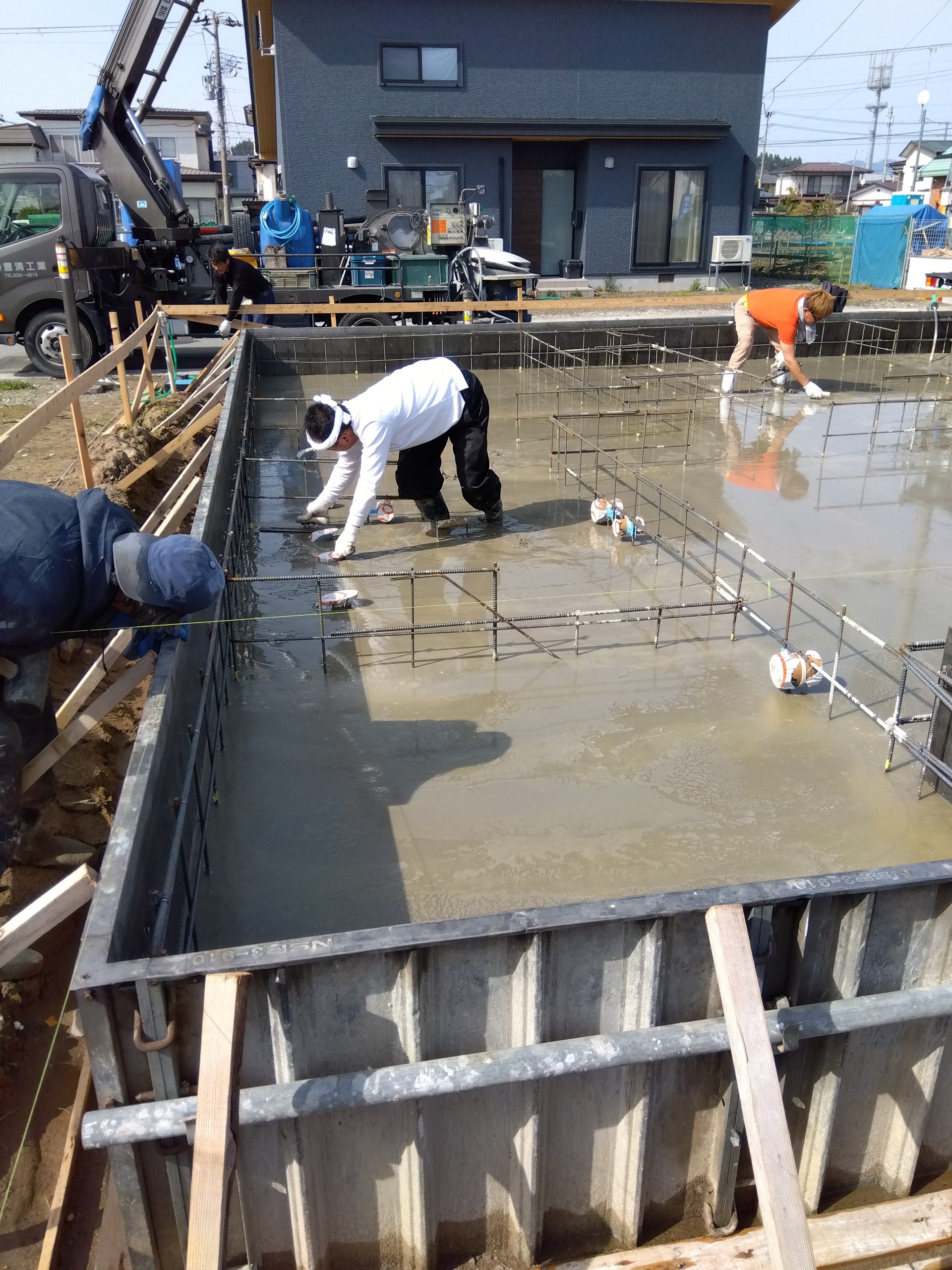 秋田市手形S様邸~ベタ基礎配筋⇒底盤コンクリート打設迄~