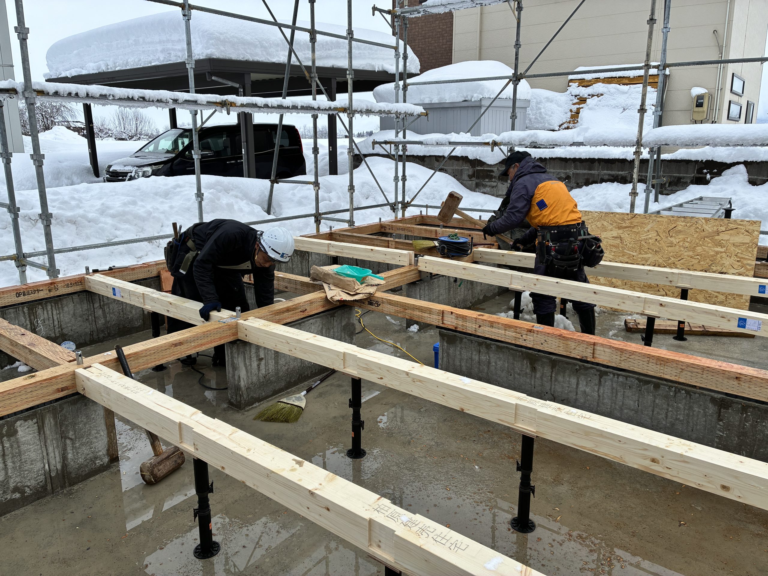 羽後町柏原【建売住宅】~土台敷作業~