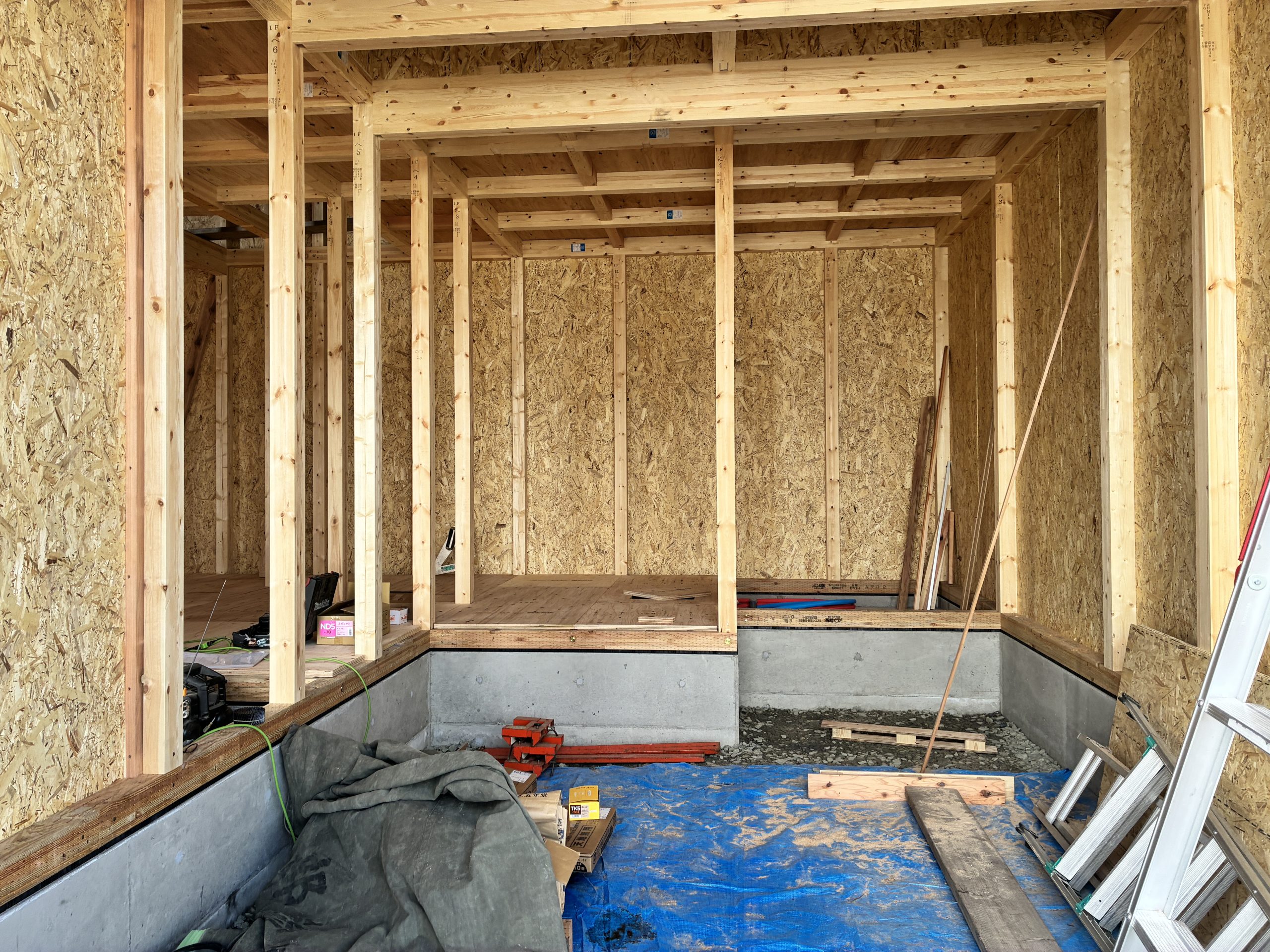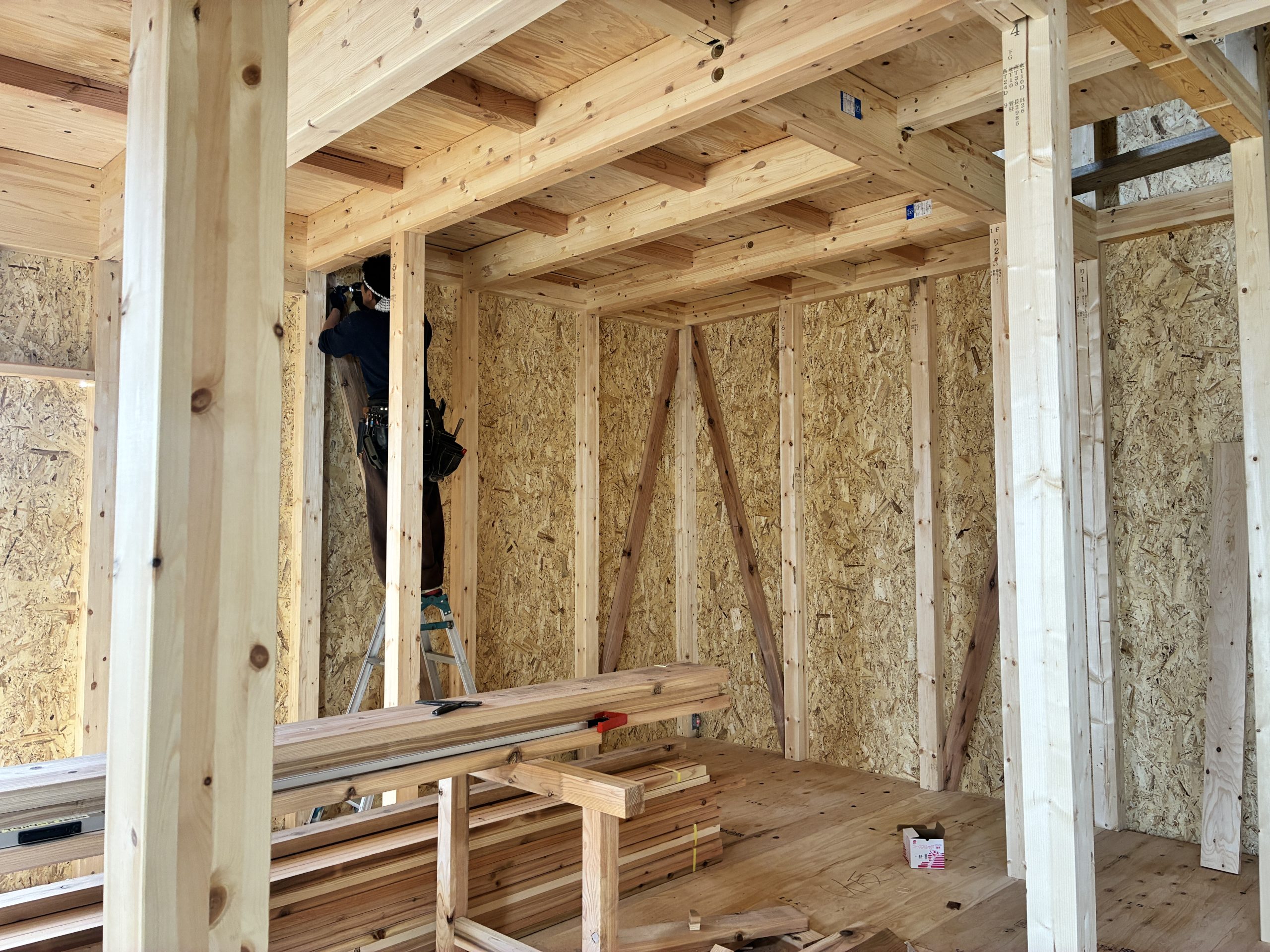 無事に上棟し、外周のOSB作業もおおむね完了しています。