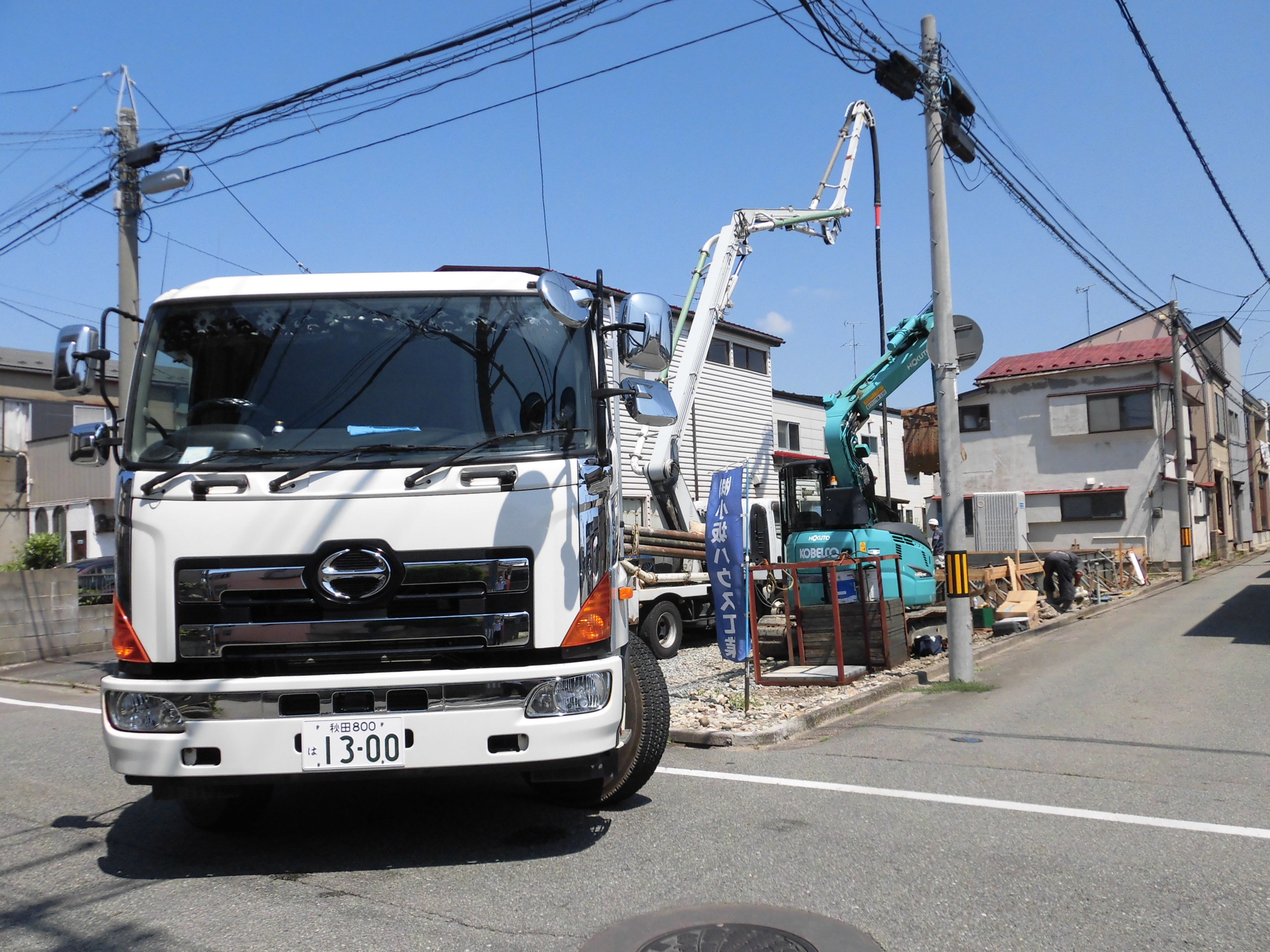生コンの運転手とコンクリート圧送車の担当者、そして基礎屋さんの連携によって現場は進み、