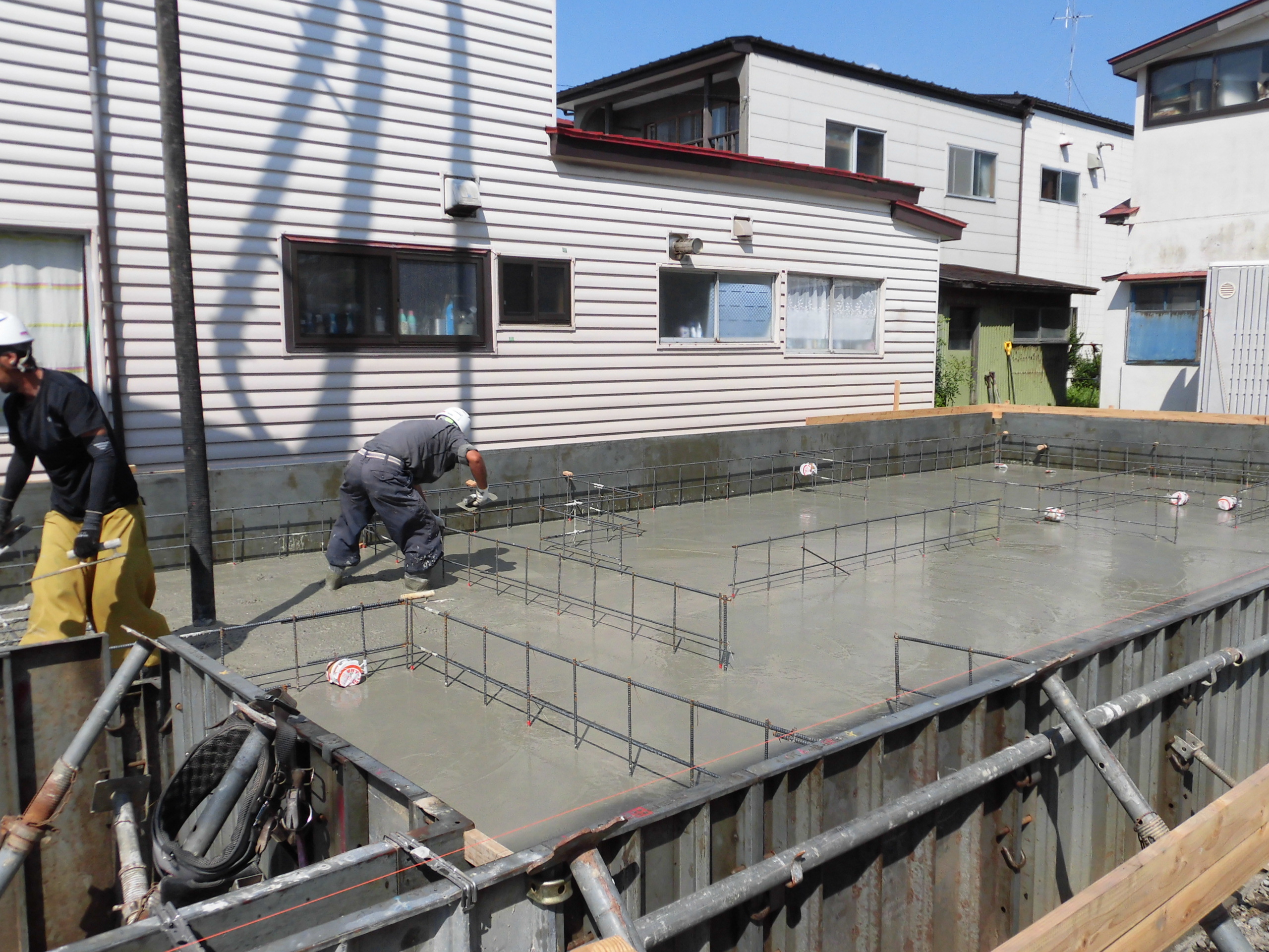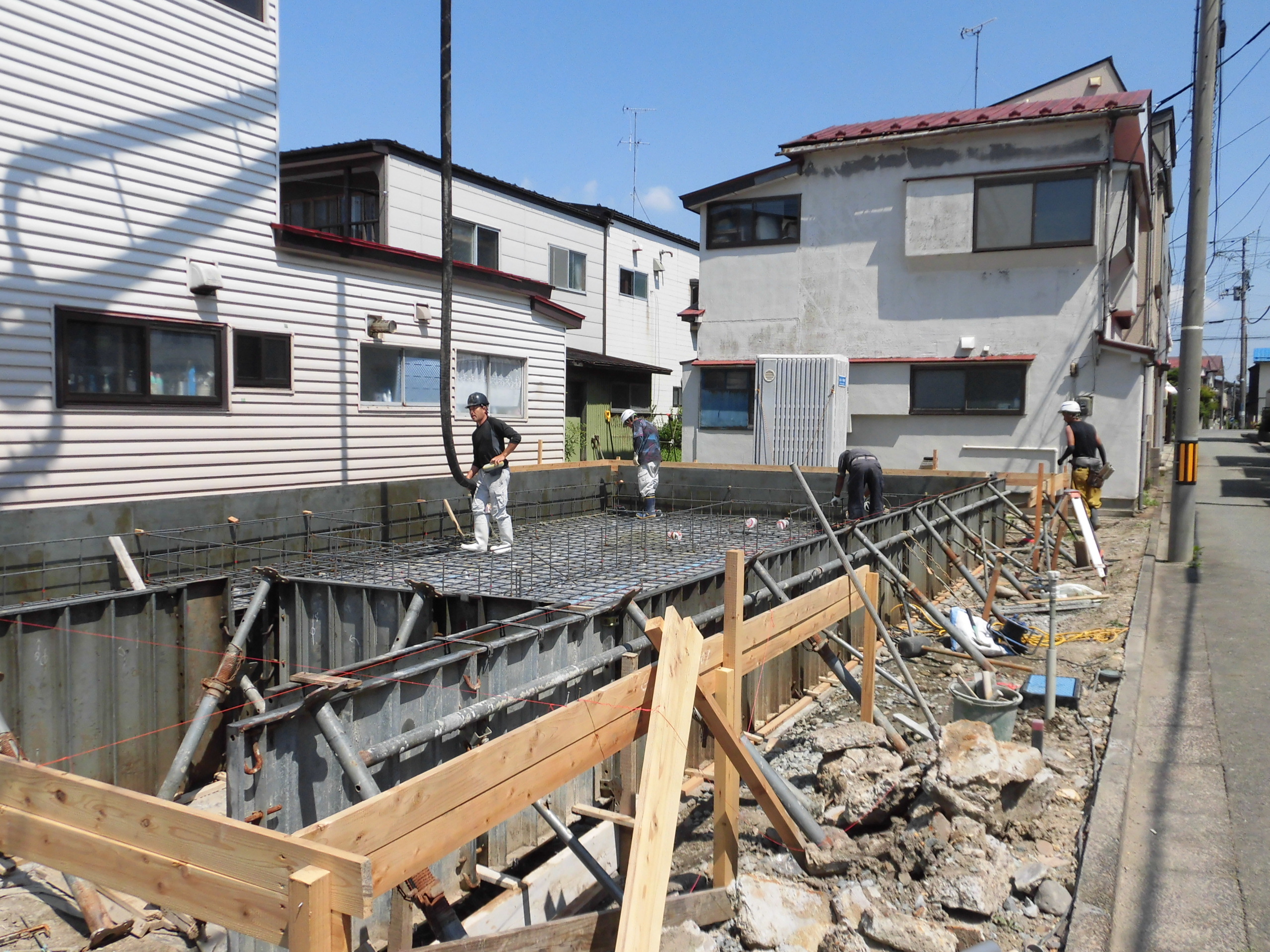 そして、翌日の午後からベタ基礎耐圧盤のコンクリート打設をしました。