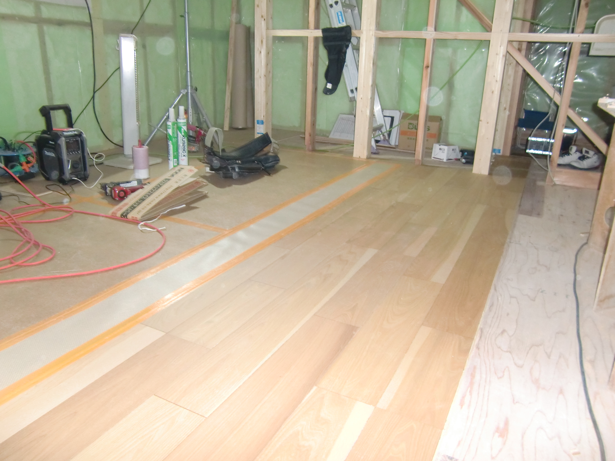 1階部分はボード張り・フロア張りの作業に入りました。